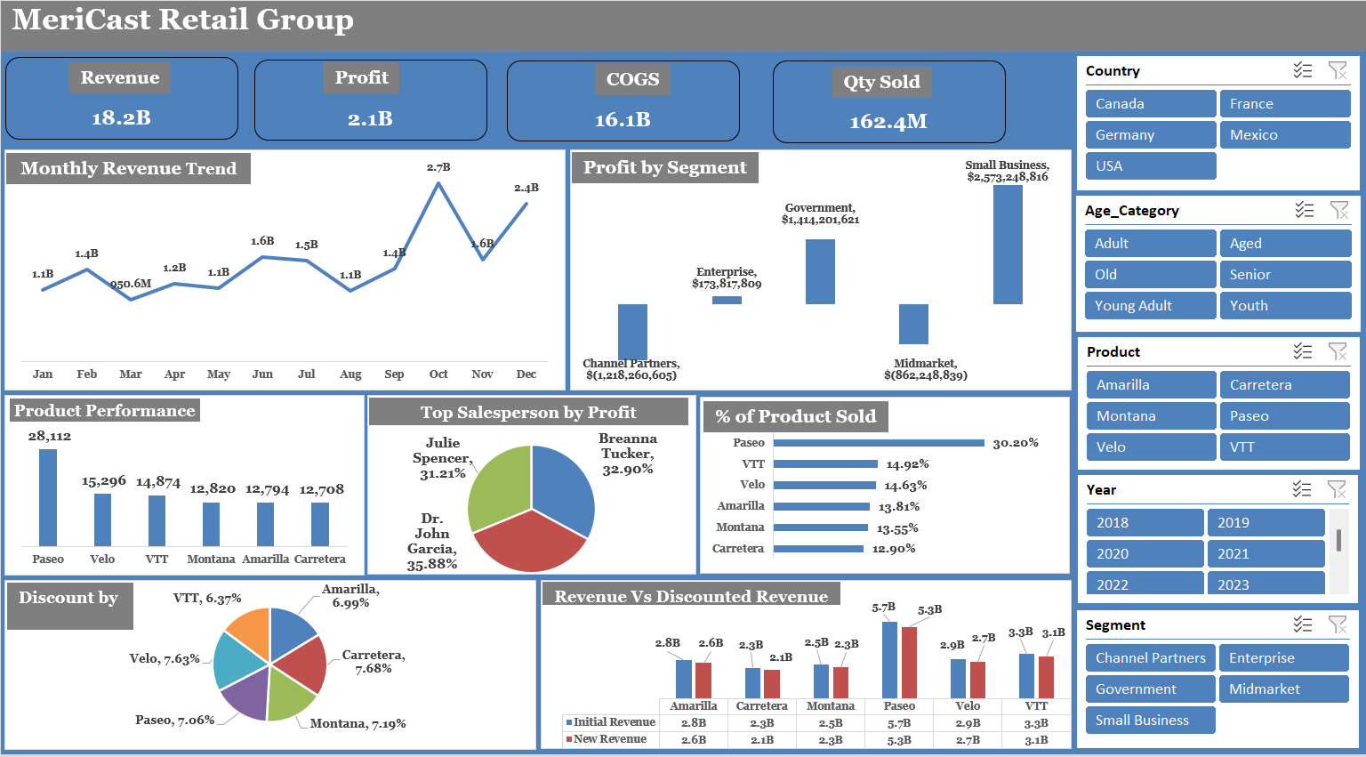 MeriCast Retail Group is a global consumer goods company operating across North America, Europe, and Asia, serving customers from government and large enterprises to small businesses. Rapid expansion over the past seven years led to fragmented reporting and inconsistent data practices, limiting visibility into sales performance. This project focused on cleaning and analyzing sales data using Microsoft Excel to produce reliable insights that support better decision-making, forecasting, and operational efficiency.